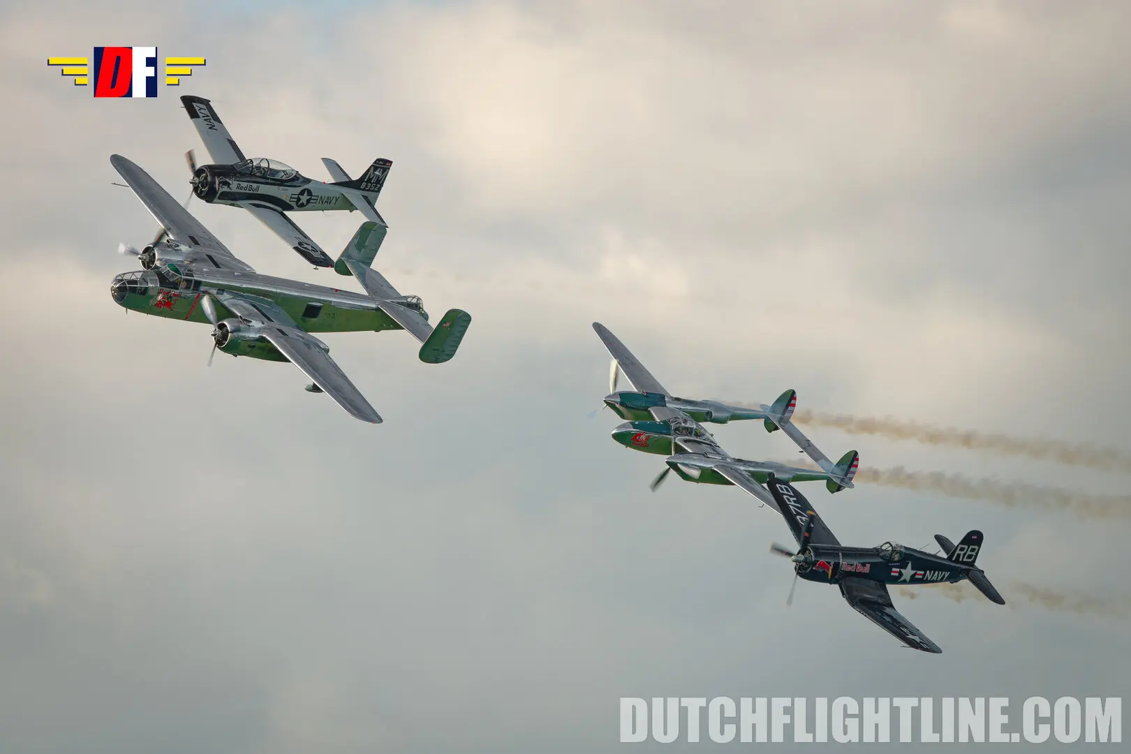 - The Flying Bulls: The Austrian team provided a "masterclass" with their fleet, including the P-38 Lightning, B-25 Mitchell, F4U Corsair, and T-28 Trojan.
